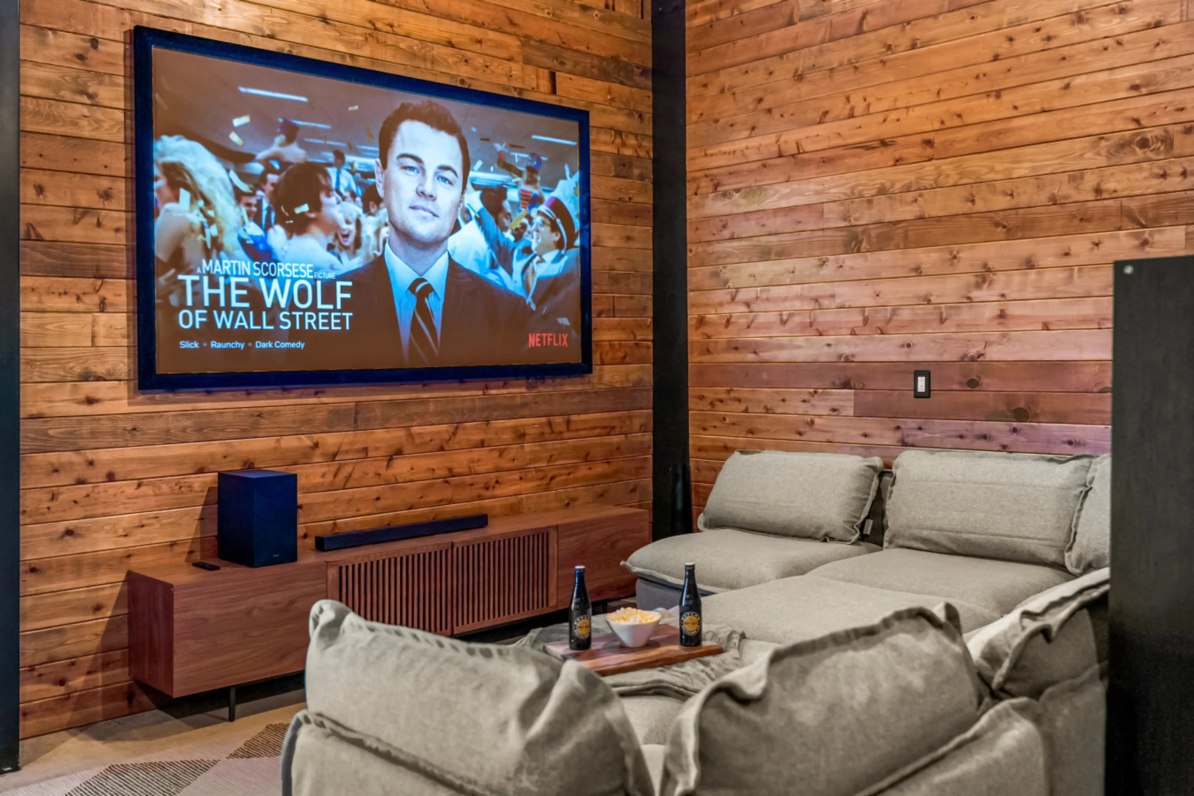 Escape to our luxe black A-frame in the pines—your private wellness + adventure retreat. Unwind and renew in the hot tub, sauna, or cold plunge, then cozy up in the large theater. Kids (and adults) will love the air hockey, ping pong, Pac-Man & board games. Enjoy organic linens, a latte machine, cof...